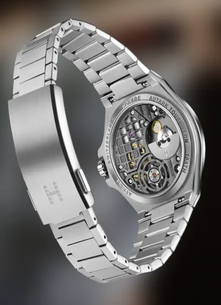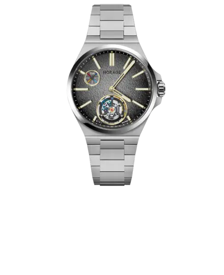 HORAGE broke the price barriers for both the Swiss titanium flying tourbillon and the micro-rotor GMT. Now we are doing it again with the micro-rotor tourbillon. The market starting point for Swiss micro-rotor tourbillons is north of 40,000 Swiss francs and can reach the hundreds of thousands. The retail price for the Autark Tourbillon starts at 12,990 Swiss francs with a Rhodium-plated Tungsten rotor. An upgrade to a PT950 Platinum rotor is available for an additional 2,000 Swiss francs.