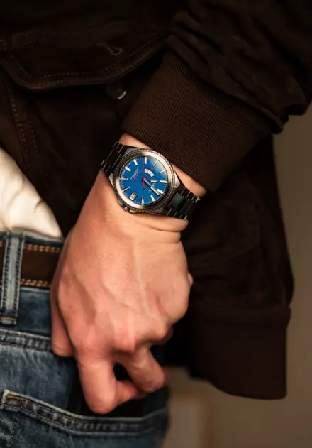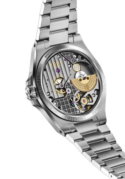 Retaining the Quick Date Adjust from the GMT and Date models, allowing for easy date adjustment when travelling. Simply turn the crown counterclockwise to adjust the date quickly.